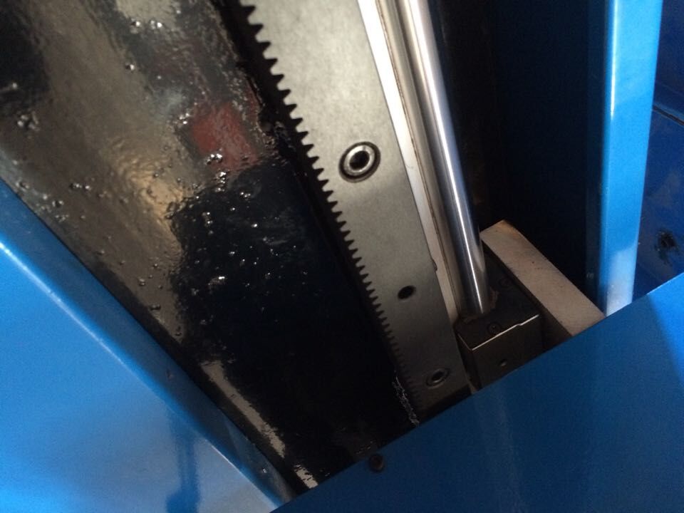 机器纵向采用(yòng)高精度齿条与日本进口松下伺服電(diàn)机结合使用(yòng),所使用(yòng)的齿轮、齿条全部经过全自动新(xīn)型淬火设备加以淬火处理(lǐ),精密的加工工艺,使其精度达到了GB/T100967-9级标准。同时用(yòng)台湾双滚轴直線(xiàn)导轨保证纵向行走更加精准。